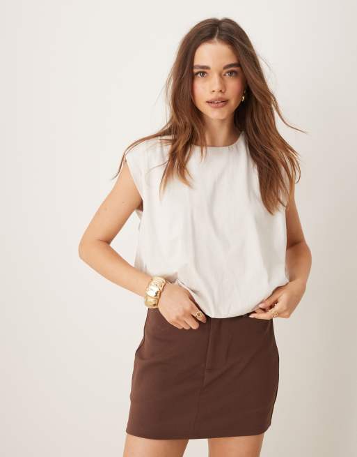 JDY – Ärmelloses Oberteil in Weiß mit Ballonsaum