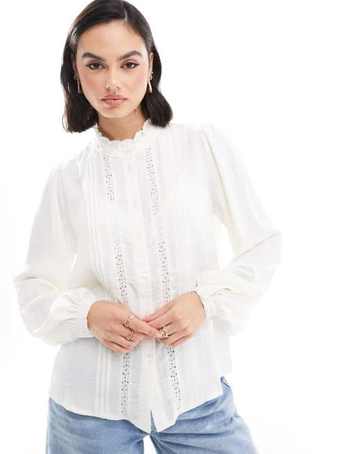 JDY – Bluse in Cremeweiß mit Spitzen-Detail