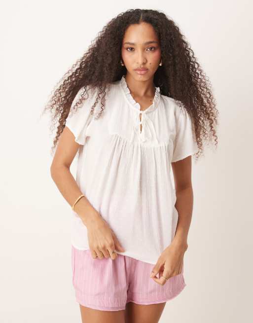 JDY – Bluse in Weiß mit Lochstickerei und Bindedetail