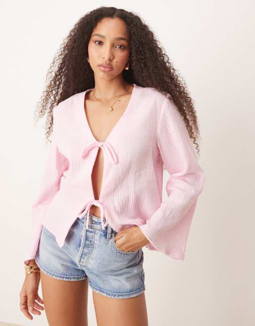 JDY – Hemdbluse aus Musselinstoff in Rosa mit gebundener Vorderseite, Kombiteil