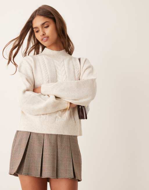 JDY – Hochgeschlossener Strickpullover in Cremeweiß mit Zopfmuster