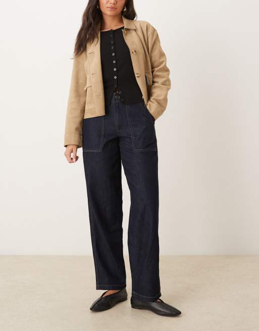 JDY – Jeans in Dunkelblau mit weitem Bein, Nahtdetails und hohem Bund