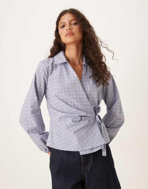 JDY – Kariertes Hemd in Hellblau mit Binde-Knoten