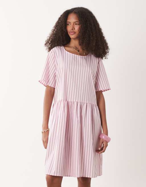 JDY – Kurzärmliges Minikleid in gestreiftem Rosa
