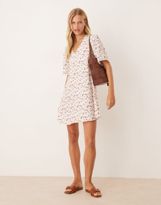 JDY – Kurzärmliges Minikleid in Weiß mit Blumenprint