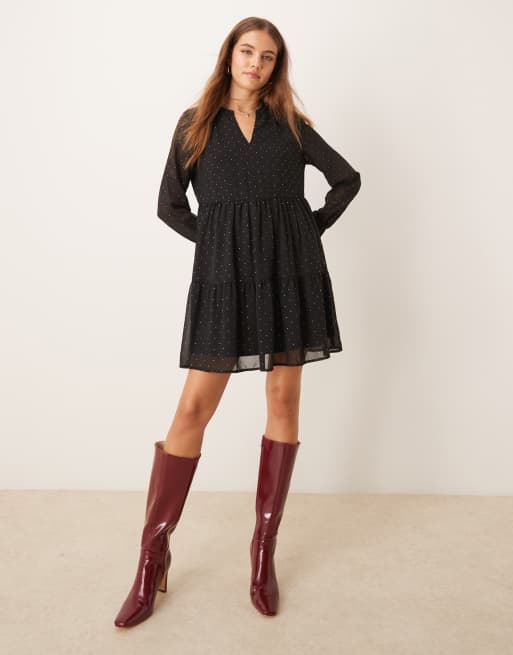 JDY – Langärmliges Minikleid in Schwarz mit Nietendetails