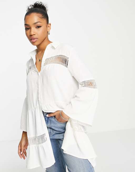 JDY – Longline-Tunikabluse in Weiß mit Spitzeneinsätzen