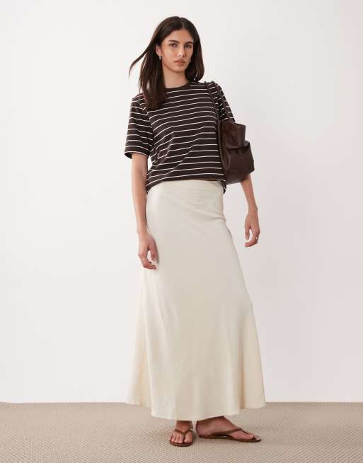 JDY – Maxirock aus Satin in Cremeweiß mit A-Linien-Schnitt