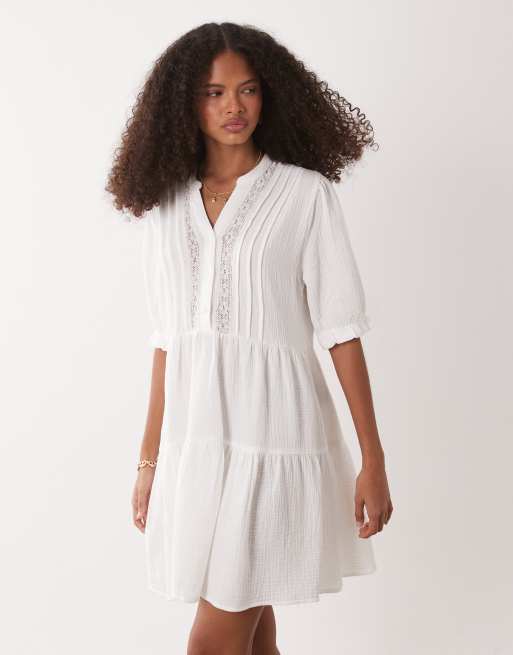 JDY – Musselin-Minikleid in Weiß mit tief angesetztem Saum und Spitzendetail