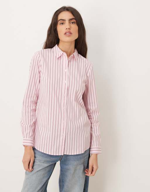 JDY – Oversize-Hemd in Blassrosa mit Streifen