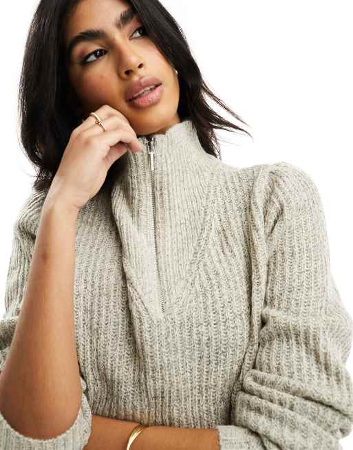 JDY – Pullover in Hellbeige mit kurzem Reißverschluss