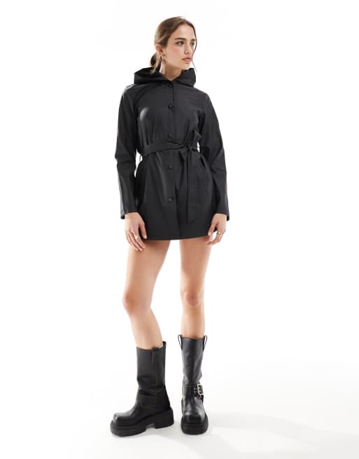JDY – Regenjacke in Schwarz mit Gürtel und Kapuze