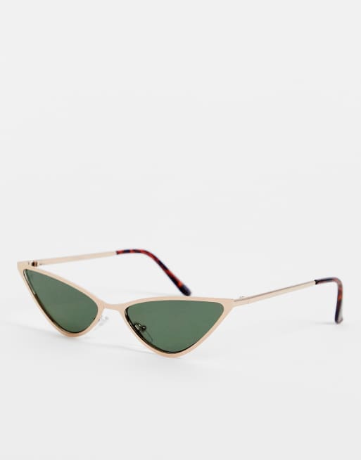 Jeepers Peepers – Schmale Cat-Eye-Sonnenbrille in Gold mit grünen Gläsern