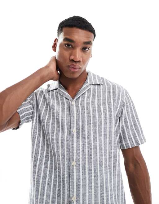 JJ Rebel – Kurzärmliges Hemd in Blau mit Streifen, Struktur und Reverskragen