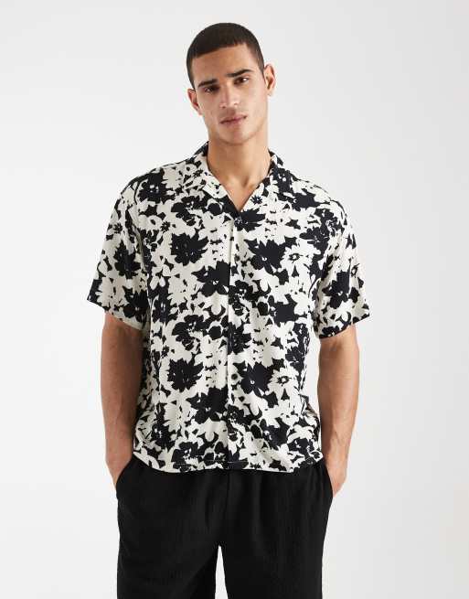 JJ Rebel – Kurzärmliges Hemd in Schwarz mit Blumenmuster