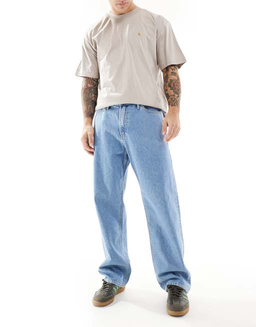 JJ Rebel – Weite Jeans in Blau in mittelblauer Waschung