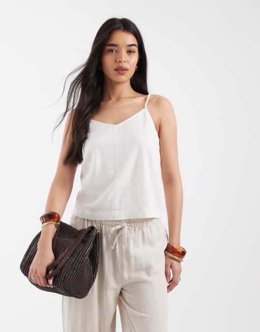 JJXX – Camisole-Oberteil aus Leinenmix in Weiß