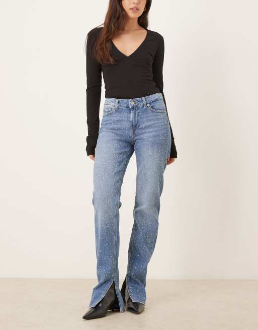 JJXX – Ciara – Schlagjeans in Mittelblau mit Strassdetail