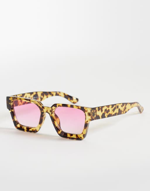 JJXX – Eckige Sonnenbrille in Schildpatt-Optik mit rosa Gläsern