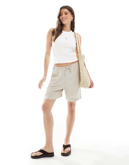 JJXX – Shorts aus Leinenmix in gestreiftem Cremeweiß