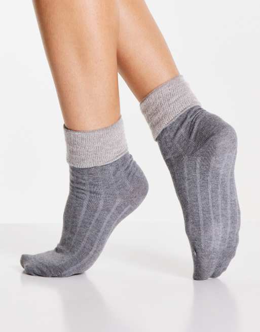 Jonathan Aston – Kuschelige Baumwollsocken in Grau mit kontrastierendem Umschlag