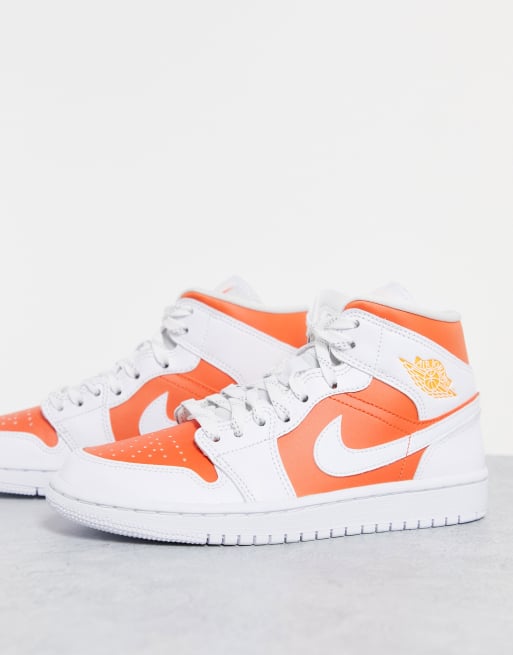 Air Jordan – 1 Mid SE – Mittelhohe Sneaker in Weiß und Orange