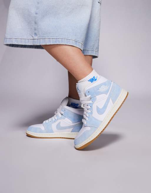Nike – Air Jordan 1 Mid – Sneaker in Weiß und Denimblau
