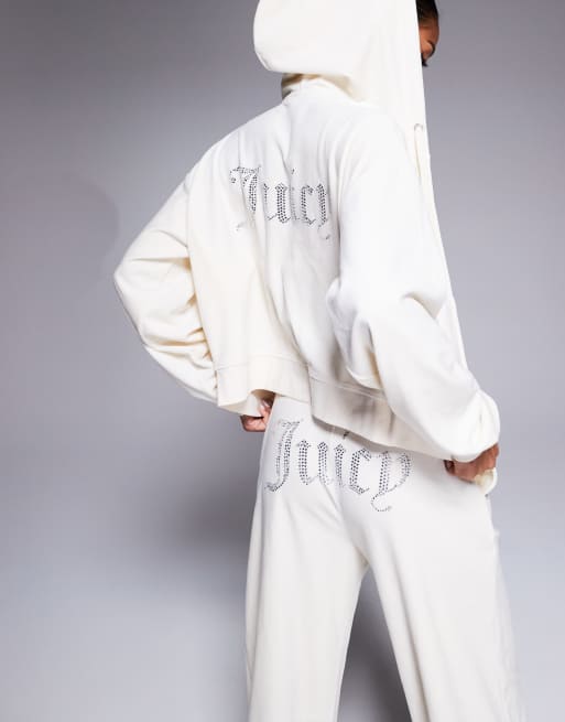 Juicy Couture – Oversize-Kapuzenjacke aus Velours in Weiß mit kurzem Schnitt und durchgehendem Reißverschluss, exklusiv bei ASOS