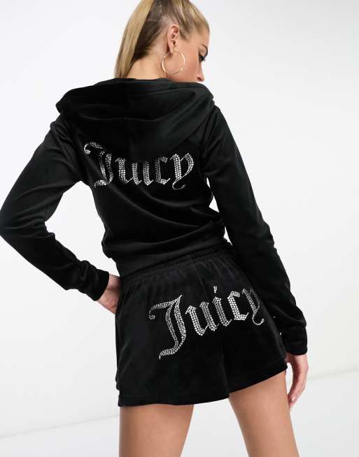 Juicy Couture – Shorts aus Velours in Schwarz, Kombiteil