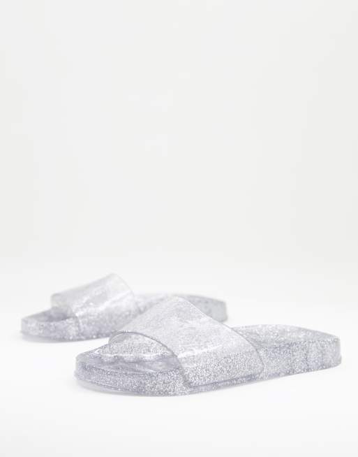 Juju – Transparente, flache Jelly-Slider in Silber glitzernd