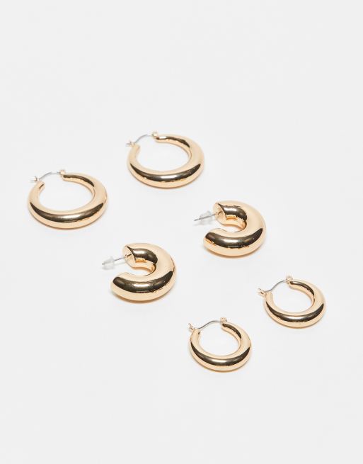 Kaiia – 3er-Pack breite, goldfarbene Creolen