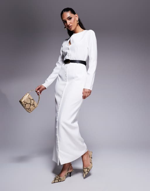 Kaiia – Exclusive – Elegantes langärmliges Maxikleid in Weiß mit Knopfleiste