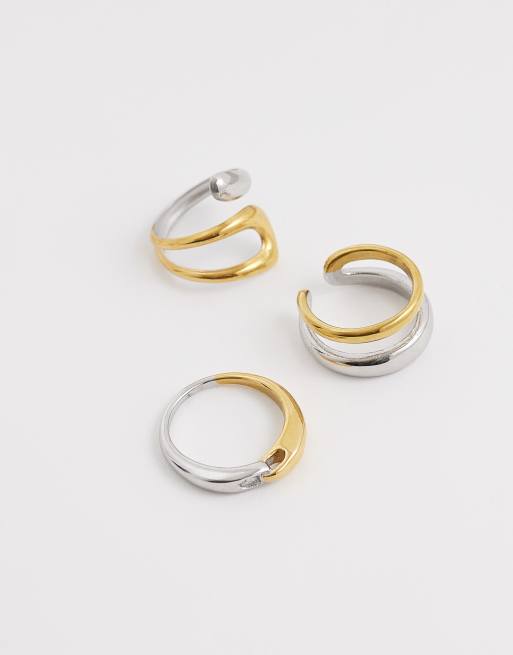 Kaiia – Exclusive – Klobige Creolen aus Edelstahl und verschiedenen Metallen mit 18-Karat-Vergoldung, 3er-Pack