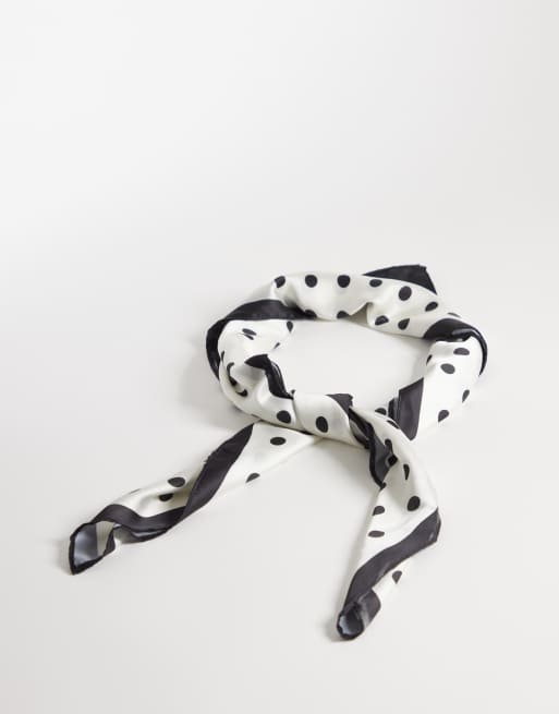 Kaiia – Exclusive – Satin-Schal in Cremeweiß mit schwarzen Polka Dots