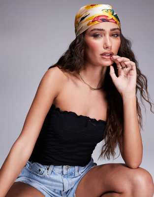 Kaiia – Exklusives Satin-Kopftuch mit buntem Sonnenblumenmuster