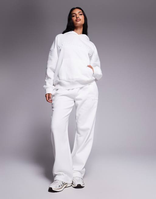 Kaiia – Jogginghose mit hohem Baumwollanteil in Weiß mit geprägtem Logo und weitem Bein, Kombiteil