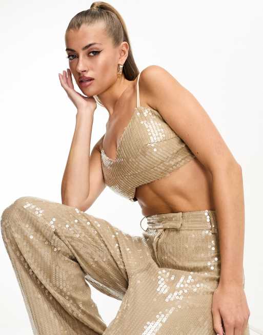 Kaiia – Kurzes Bustier-Oberteil mit schmalen Trägern und Paillettenbesatz in Gold, Kombiteil