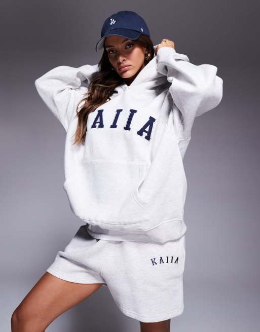 Kaiia – Mix and Match – Oversize-Kapuzenpullover, Jogginghose mit Bündchen und weitem Bein sowie Shorts in Grau meliert