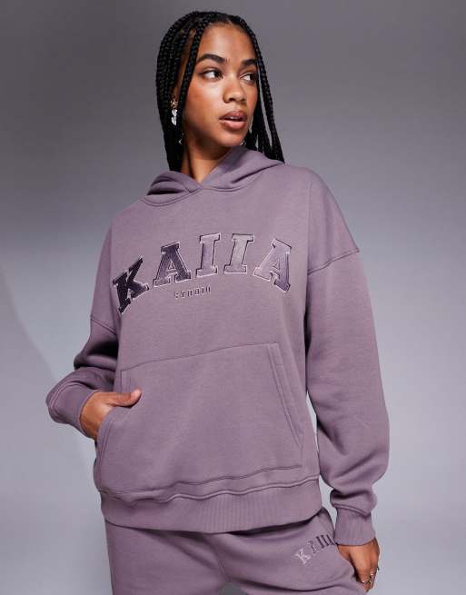 Kaiia – Oversize-Kapuzenpullover in Malve mit hohem Baumwollanteil und Logo-Stickerei, Kombiteil