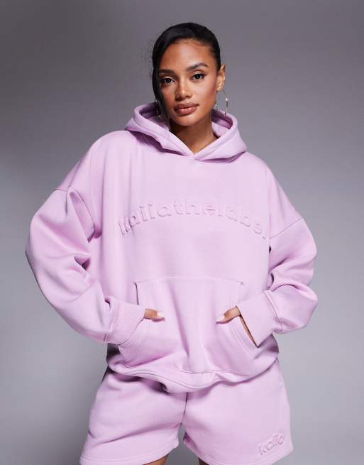 Kaiia – Oversize-Kapuzenpullover in Parma-Violett mit Prägung, Kombiteil