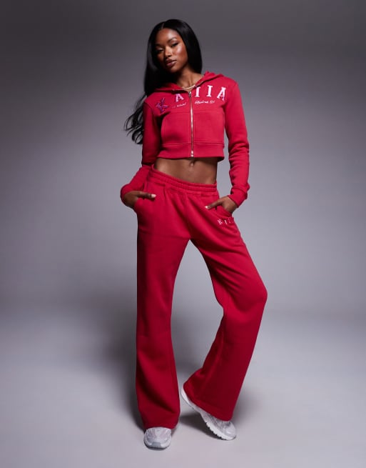 Kaiia – Set in Burgunderrot aus knapp geschnittenem T-Shirt mit Logo-Stickerei, Kapuzenpullover und Jogginghose