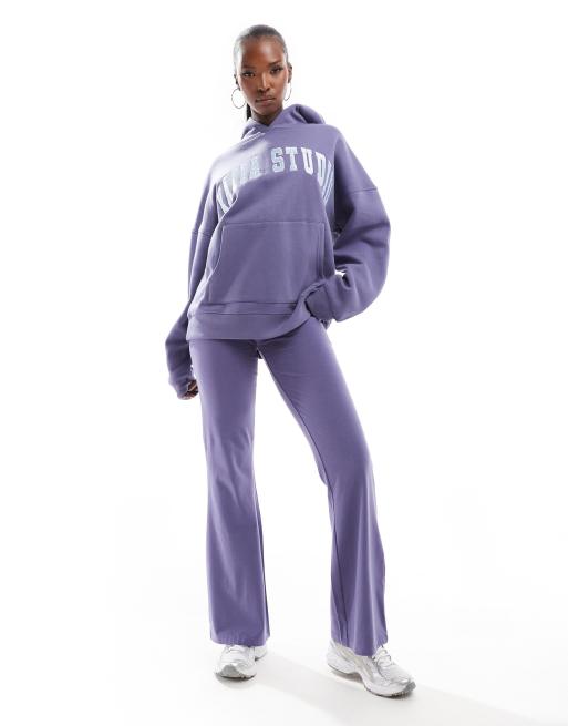 Kaiia Studio – Set in Blau mit „Studio“-Logo, aus Oversize-Kapuzenpullover und ausgestellter Yoga-Hose