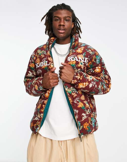 Karl Kani – Bunte Steppjacke aus Cord mit Retro-Blumenmuster