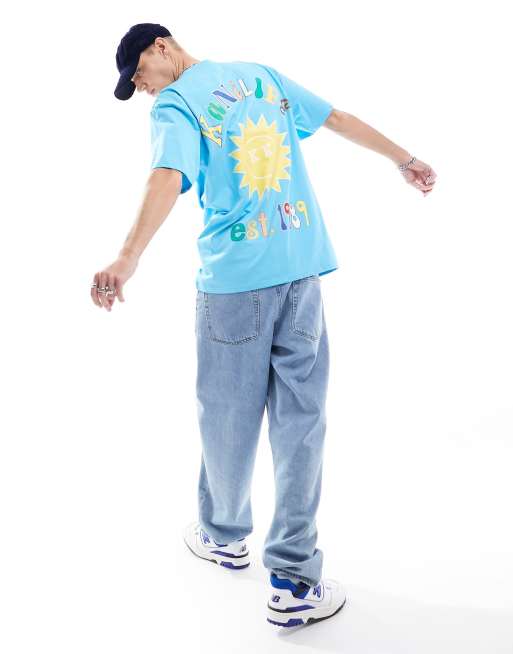 Karl Kani – Oversize-T-Shirt in Hellblau mit Rückenprint und kleinem Logo