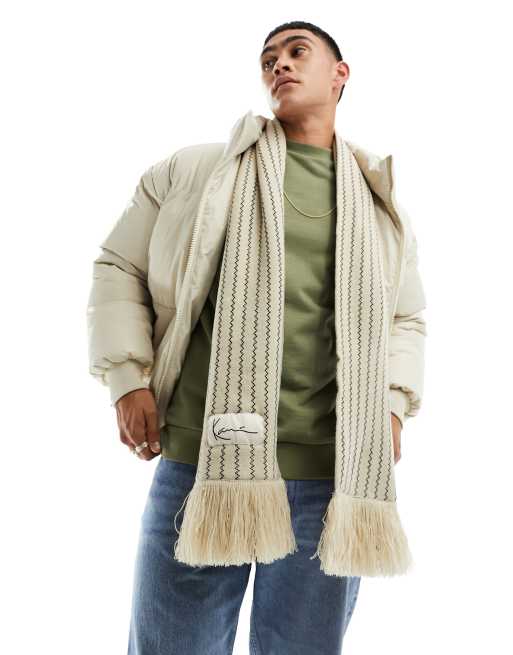 Karl Kani – Schal in Beige und Schwarz mit Signatur-Etikett und Nadelstreifen