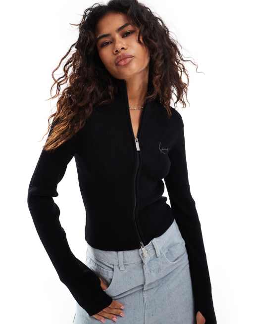 Karl Kani – Signature – Strickjacke in Schwarz mit Zwei-Wege-Reißverschluss