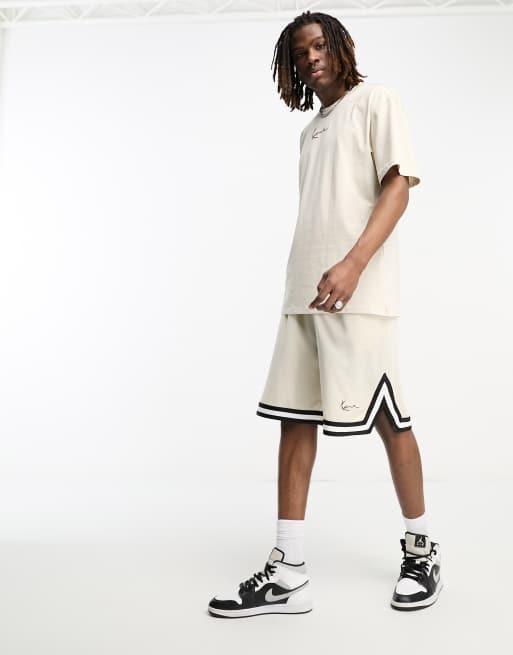 Karl Kani – Small Signature Essential – Shorts aus Netzstoff in Beige mit kleinem Logo