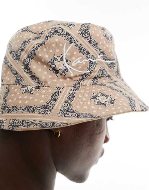 Karl Kani – Wendbarer Anglerhut in Beige mit Signatur-Logo und Paisleymuster