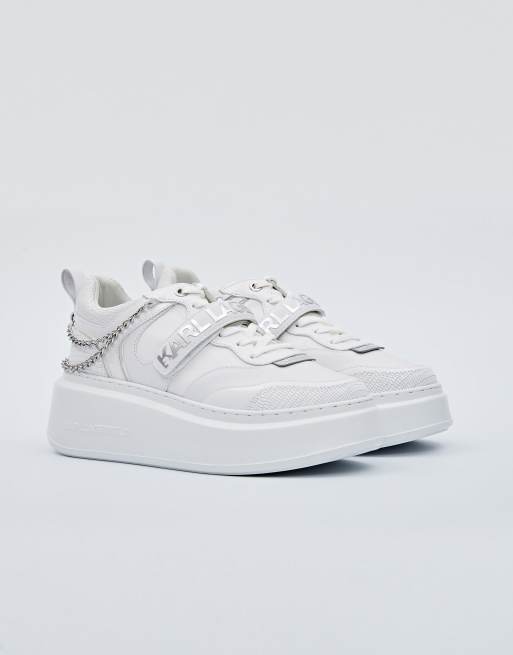 Karl Lagerfeld – Anakapri – Sneaker mit doppelter Plateausohle und Kettendetail aus weißem Leder