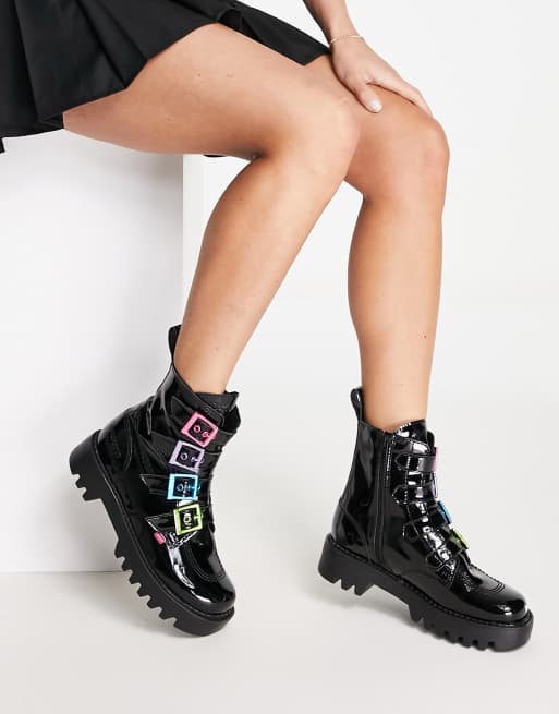 Kickers – Confetti Qween – Stiefel in Schwarz mit mehrfarbigen Schnallen